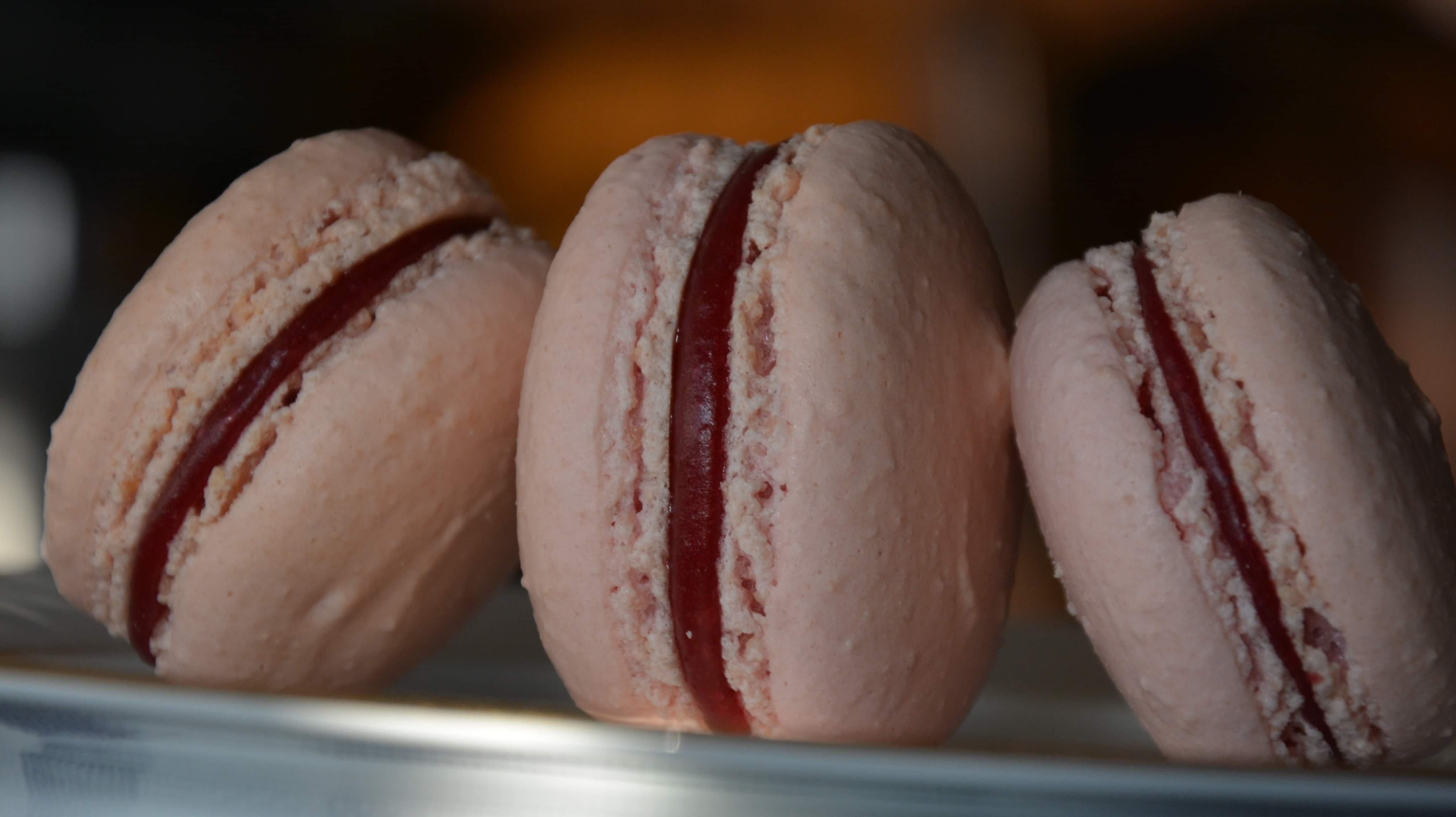 Delicate Italian meringue macaron shells paired with a soft cream filling.
